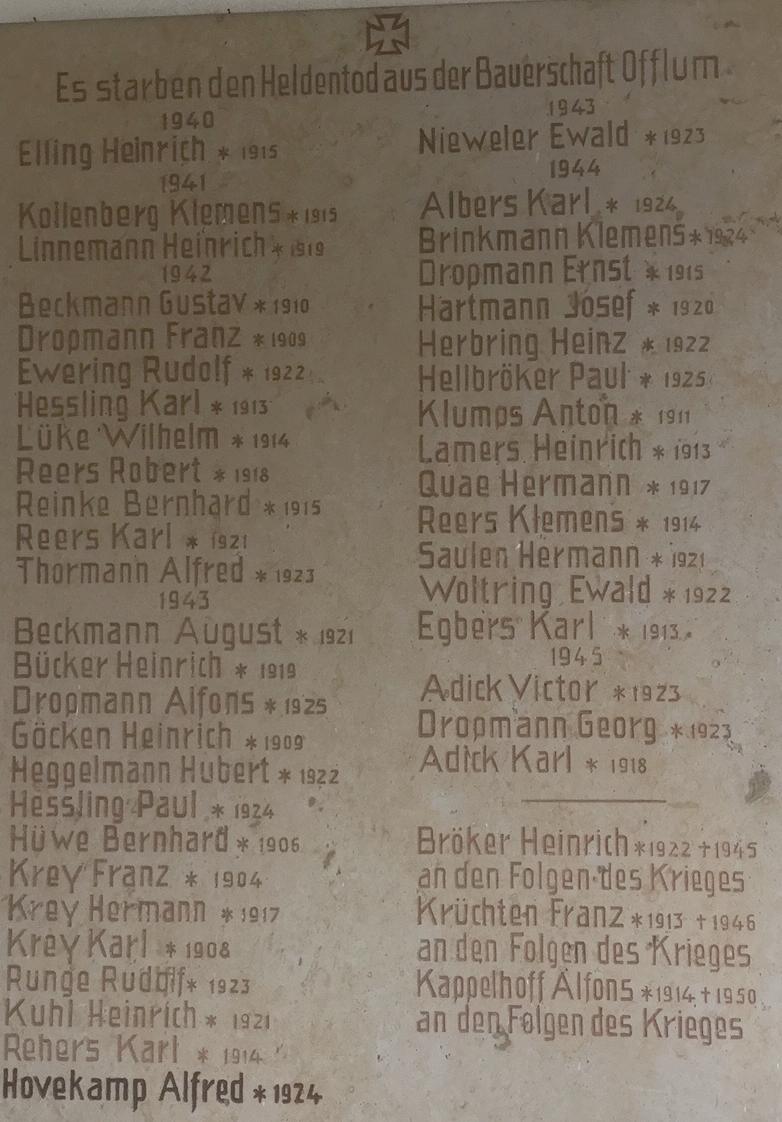 Gedenktafel am Offlumer Ehrenmal