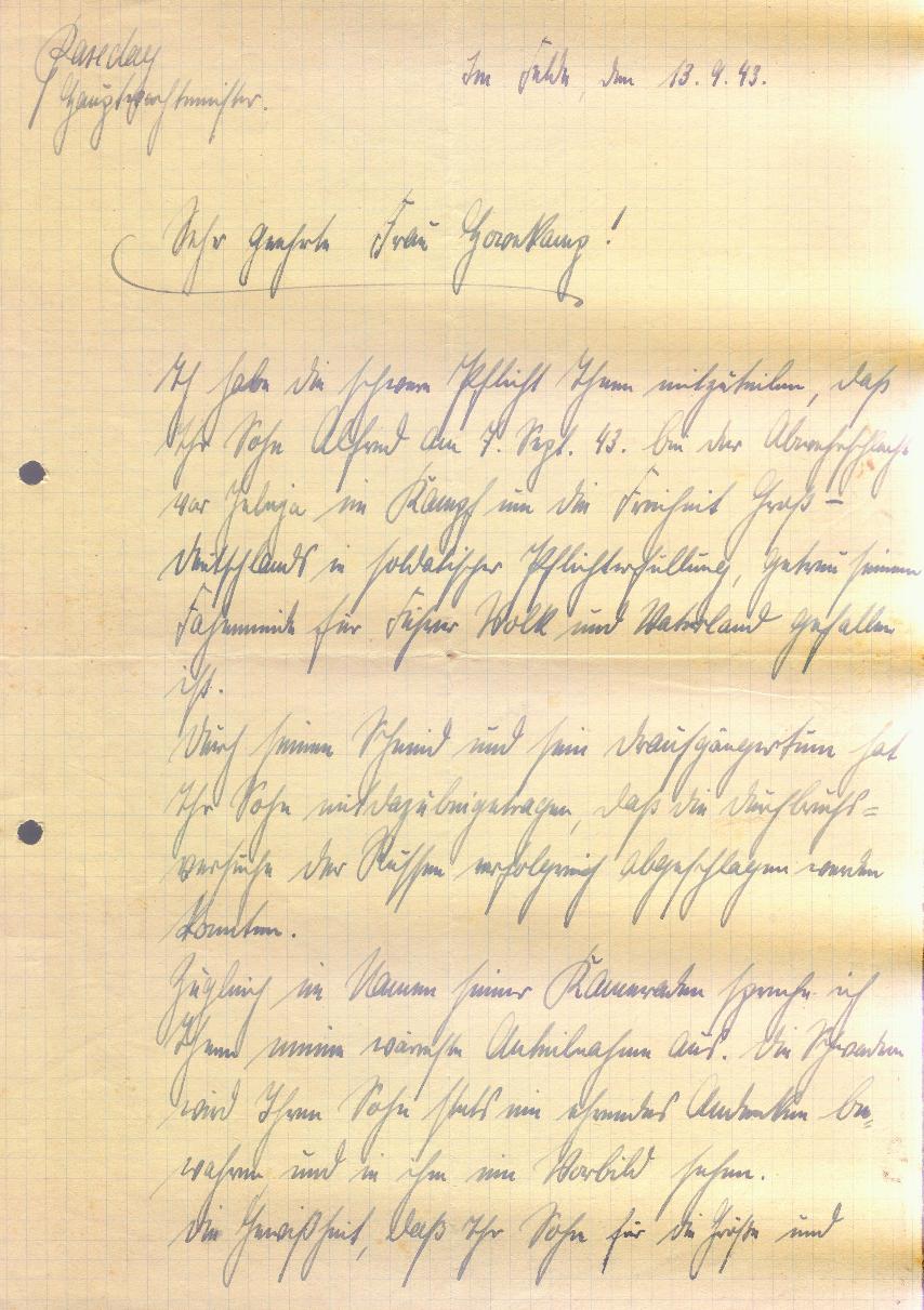 Todesnachricht vom 13. September 1943