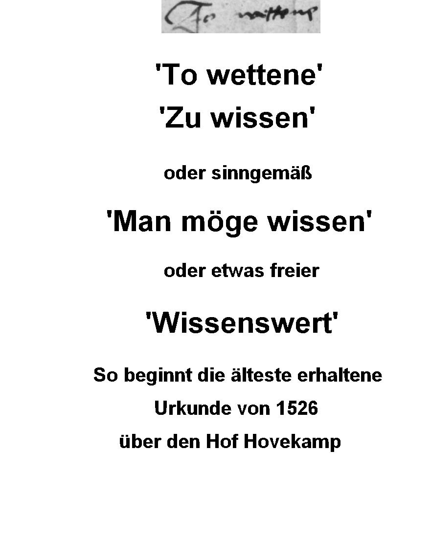 Dies Urkunde beginnt mit den Worten "To wettene". Dieser Ausdruck ist als Überschrift für diese Dokumentation verwendet.