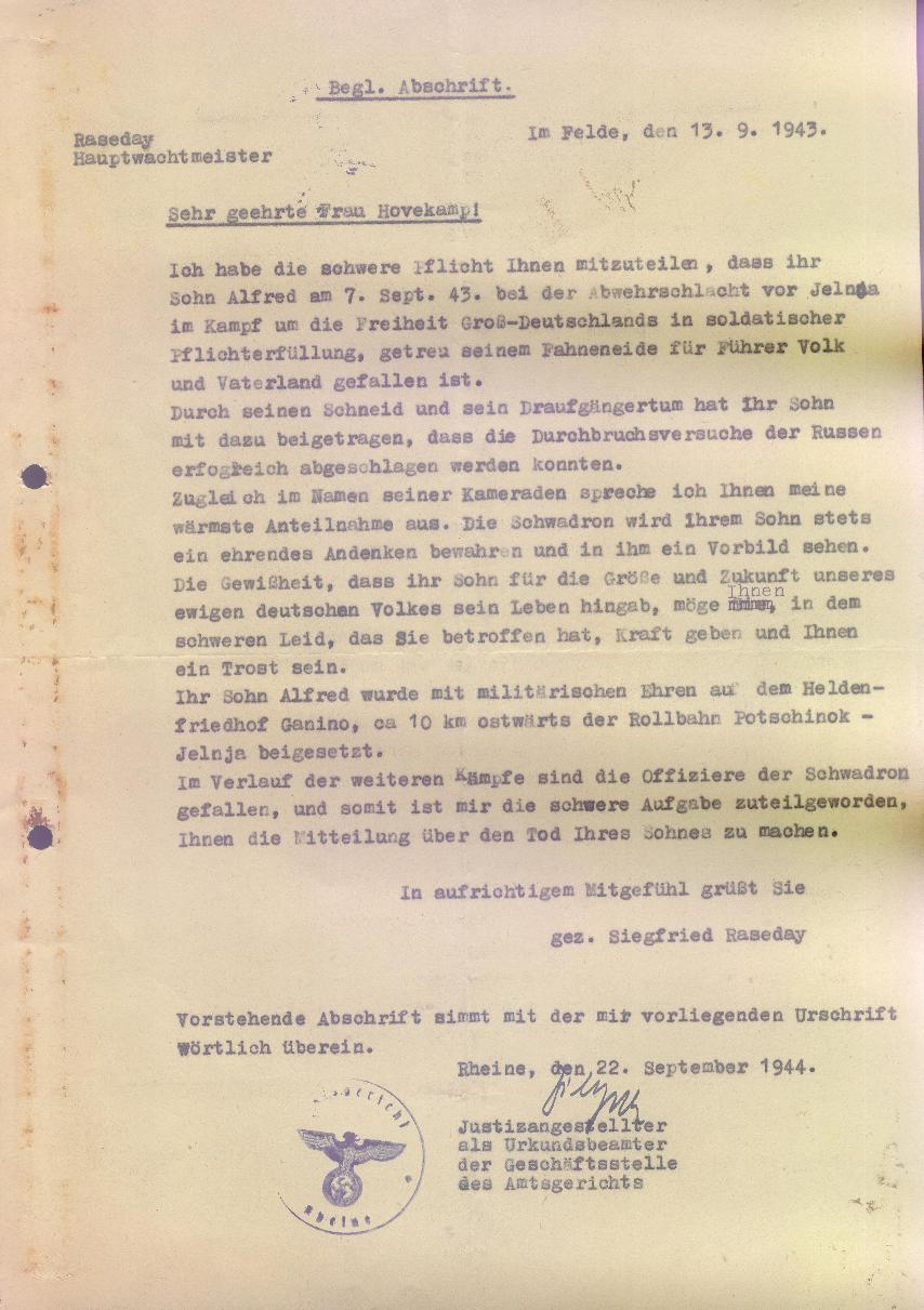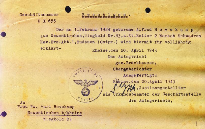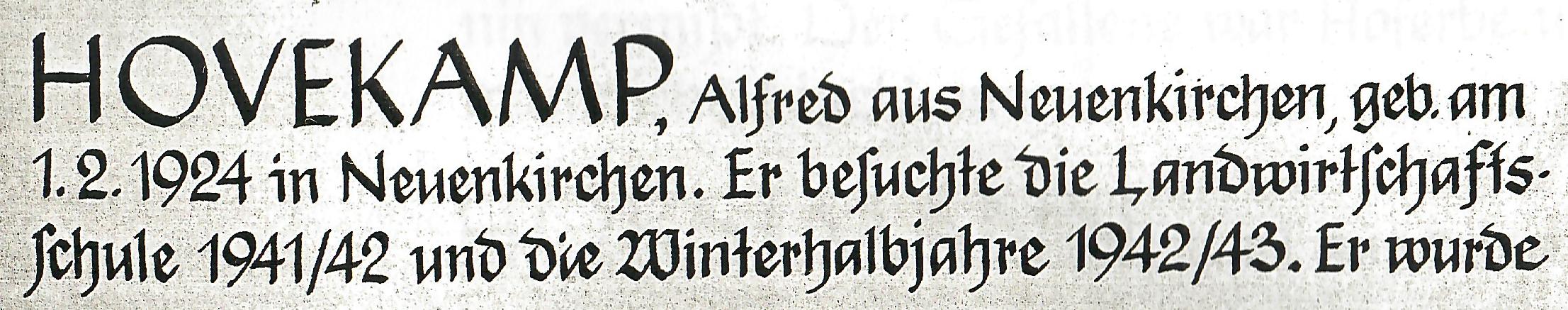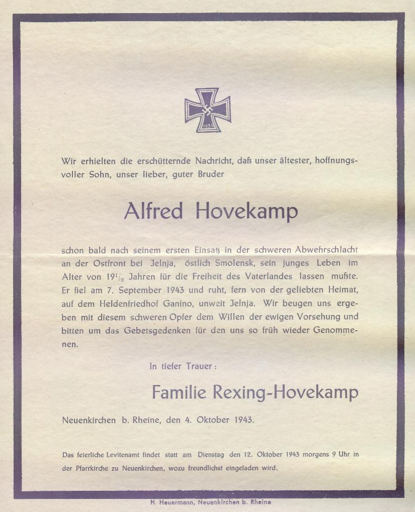 Ende des Jahres 1942 musste Alfred Hovekamp als Soldat in die Armee eintreten