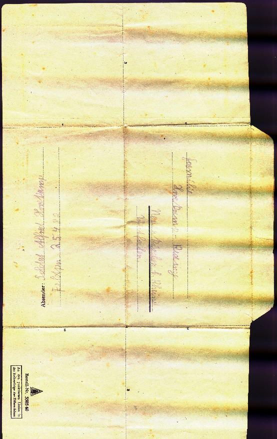 Inhalt des Feldpostbriefes [sic]