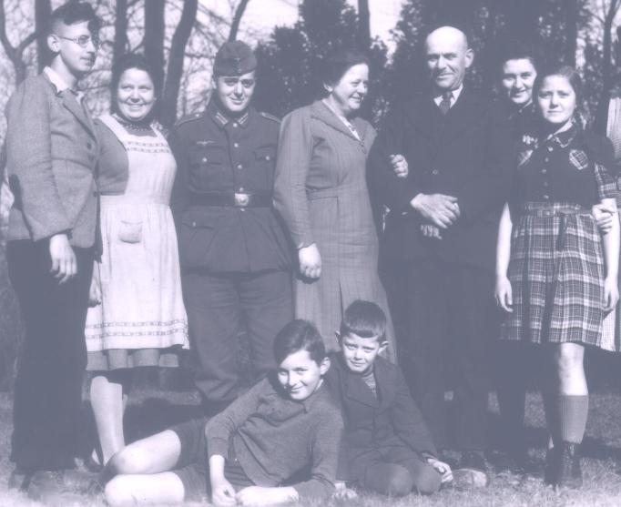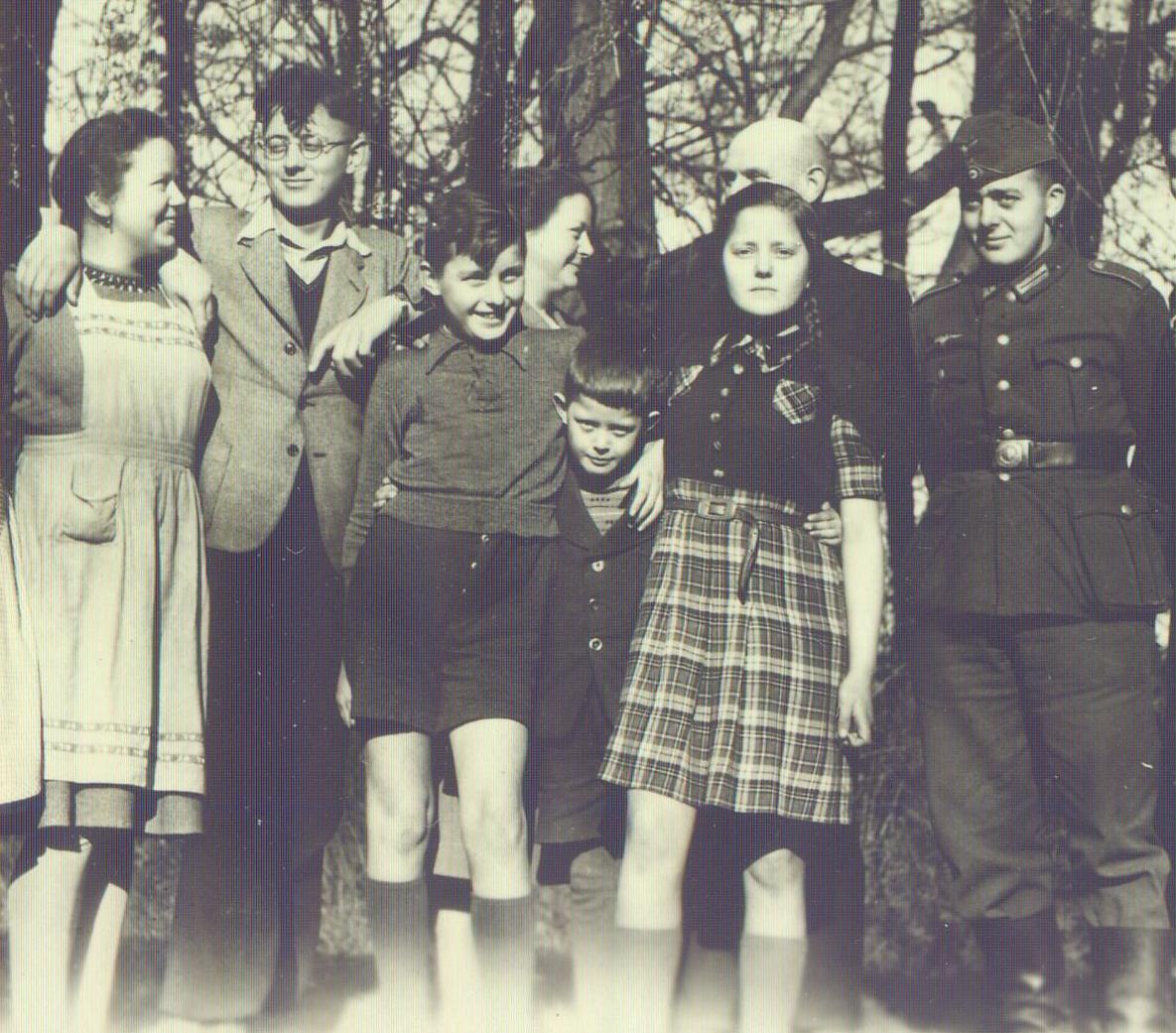 Karl-Heinz, Maria, Alfred in Uniform, Egon, Mutter Elisabeth, Konrad, Stiefvater Heinrich Rexing, eine Haushaltshilfe, Erika