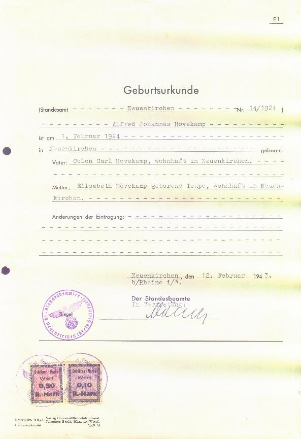 Alfred Johannes Hovekamp war das erste Kind der Eheleute Carl und Elisabeth Hovekamp (geb. Teupe),
