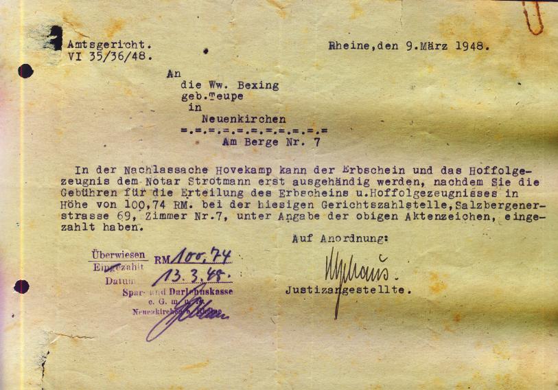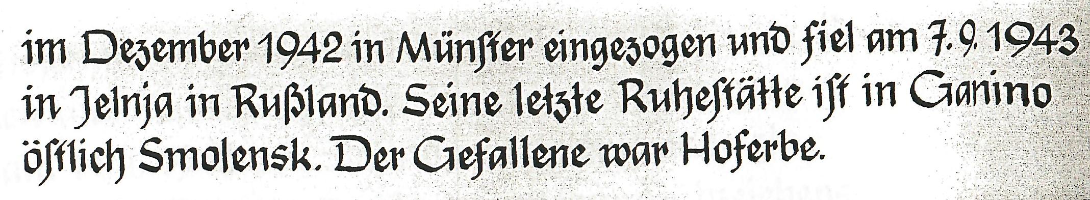 Anmerkung: Die Nachbarn Ewald Nieweler und Heini (Heinrich) Kuhl wurden ebenfalls 1943 getötet
