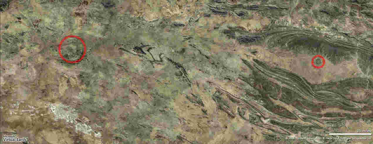 Hier die Struktur in Westen und der Impaktkrater Gosses Bluff im Osten.