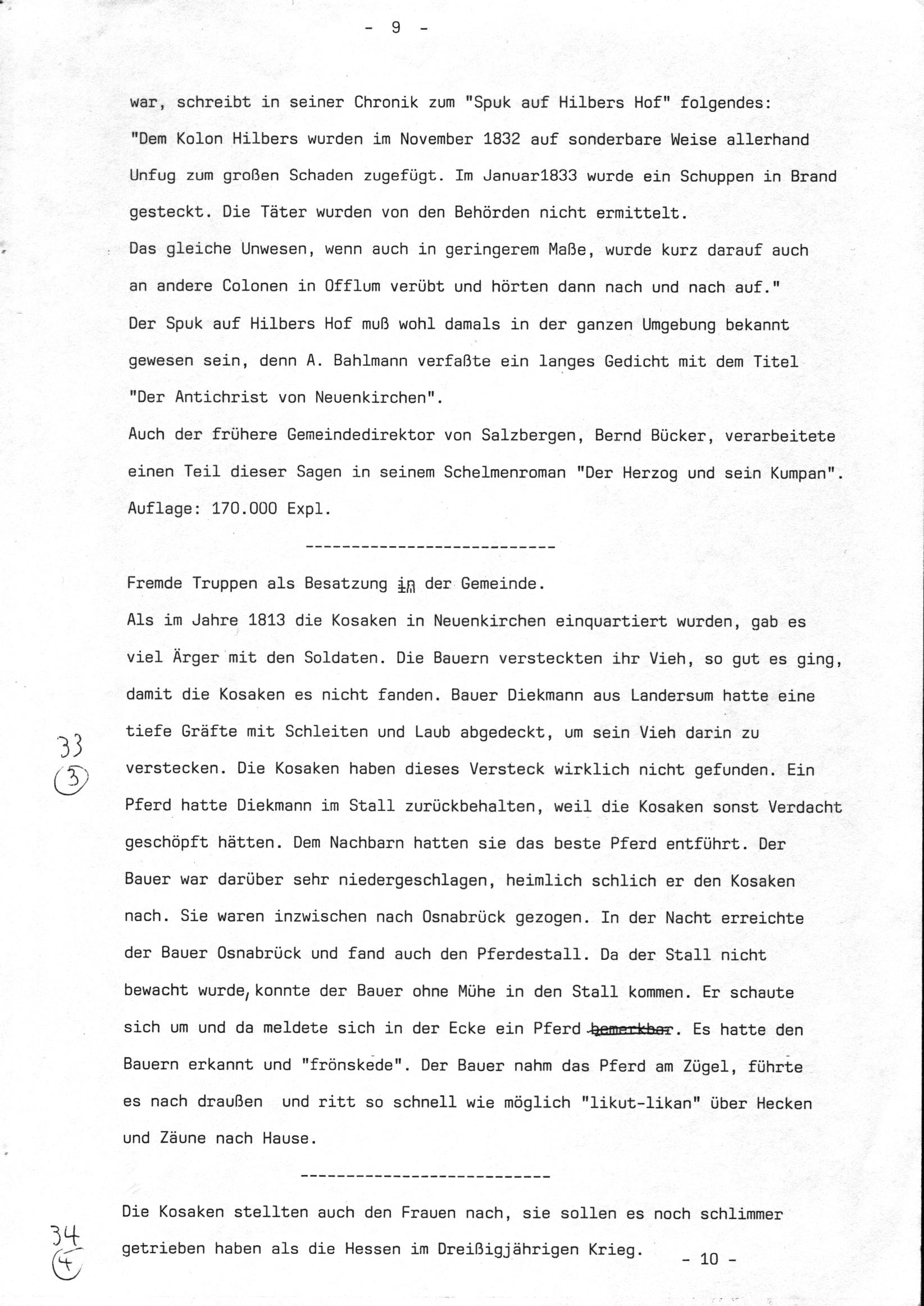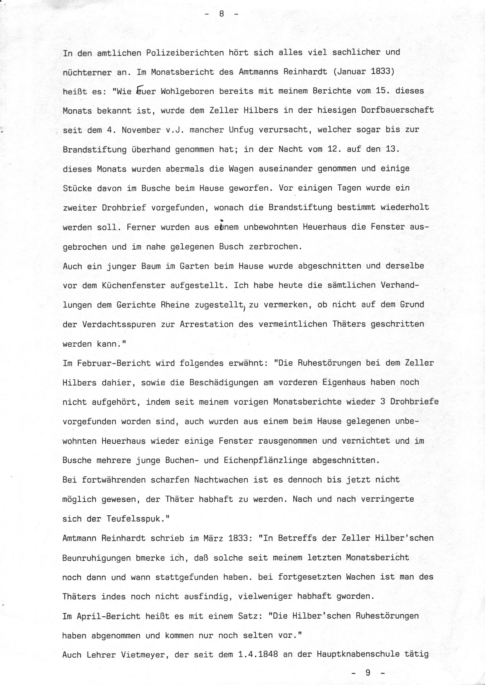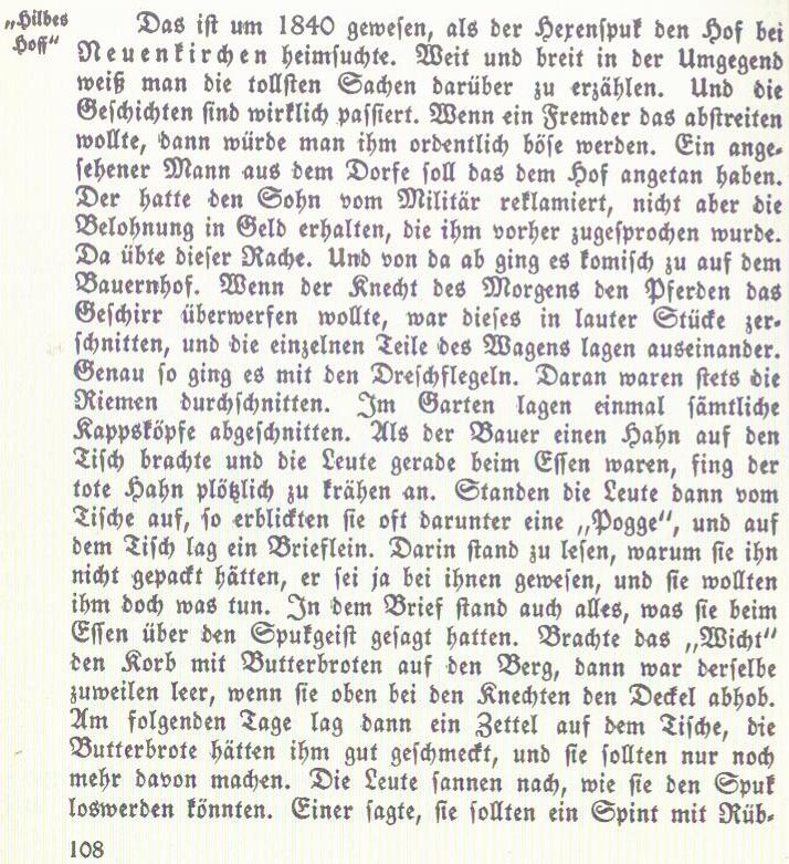 Informationen von Heinrich Fischer zum Spuk auf Hilbers Hof:
