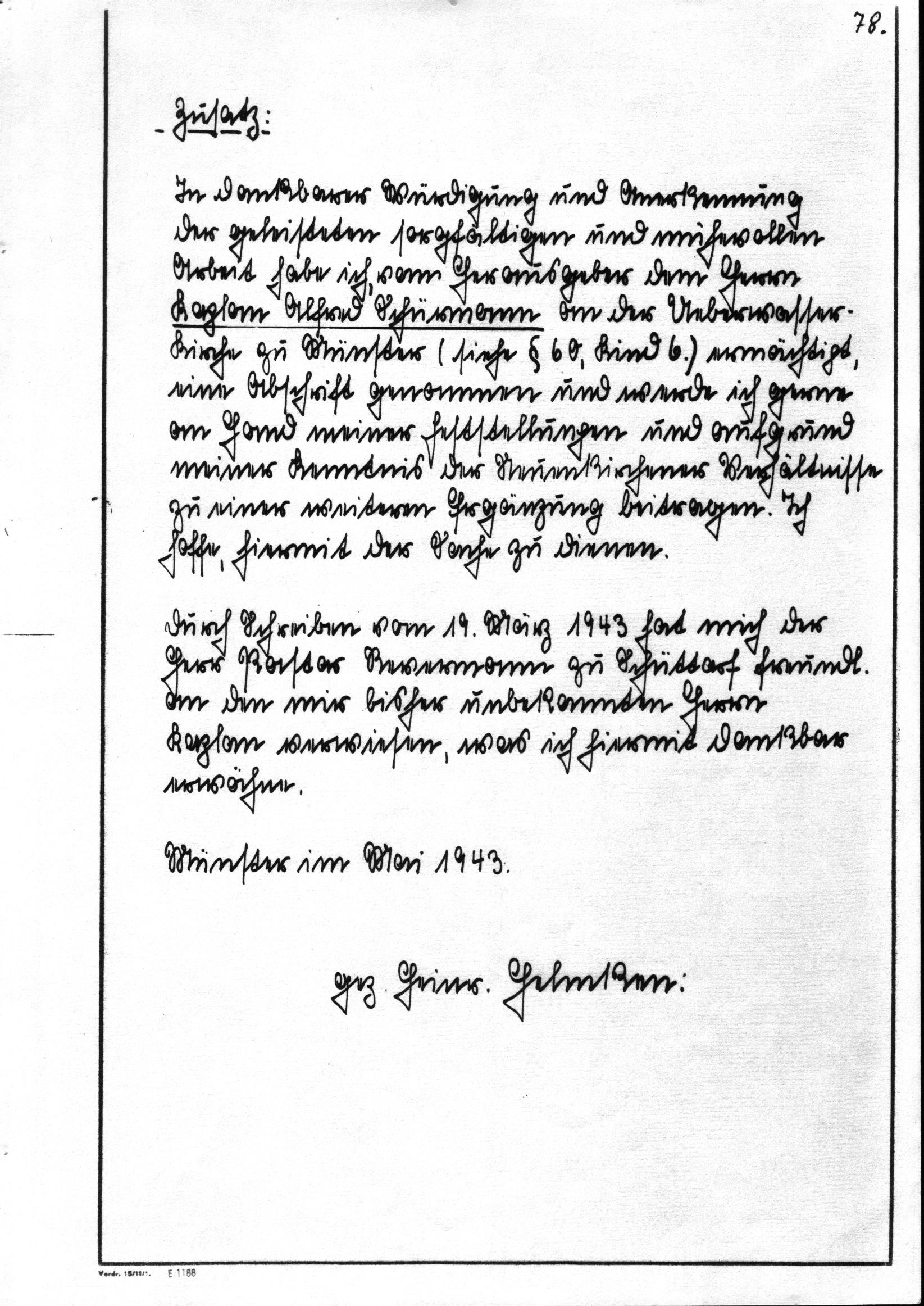 Aufzeichnungen von Heinrich Helmken (Sohn von Justina Helmken geb. Hilbers) aus dem Jahre 1943:
