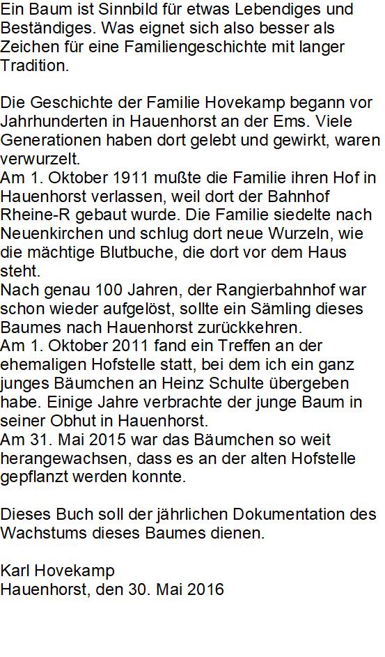 Bei seinen Nachforschungen erfuhr er auch von dem Schiksal des Hofes Hovekamp und kontaktierte unsere Familie.