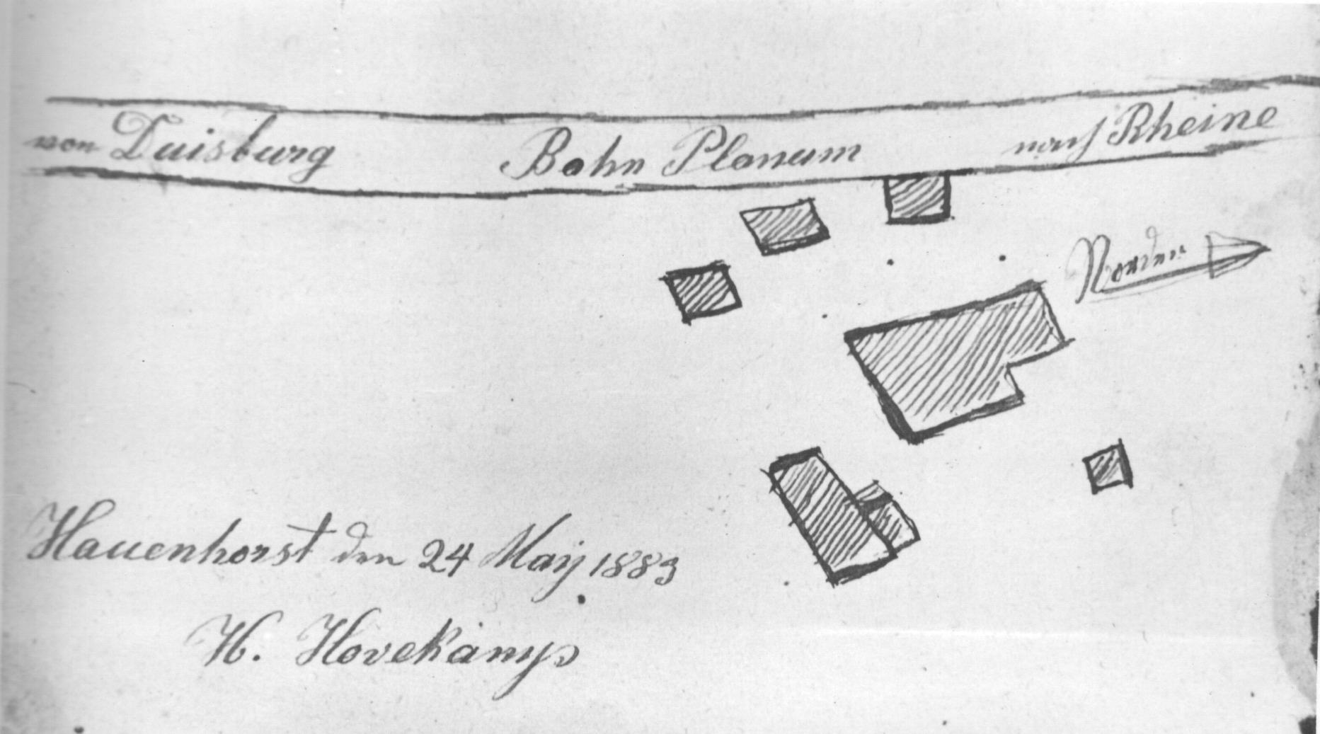 Hofansicht in Hauenhorst nach dem Bahnbau bis 1911.